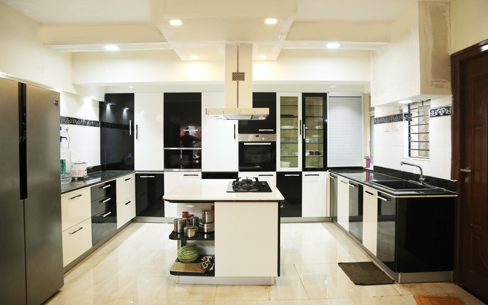 Here is a perfect kitchen type for your medium size kitchen in Pune. An E-Shaped kitchen as the name itself suggests, is supported by two array system which provides a good storage solution. The middle portion is reserved for a table like mount which gives it its unique ‘E’ Shape. This mount helps you to turn your kitchen into a small eat-in type dining place or simply turn it into a storage come dining table. If you are thinking that this would lead to congestion of space then let me tell you that you should relax, as the E-Shaped kitchen ensures sufficient space for movement and even enough space so that more than one person can work at a time.